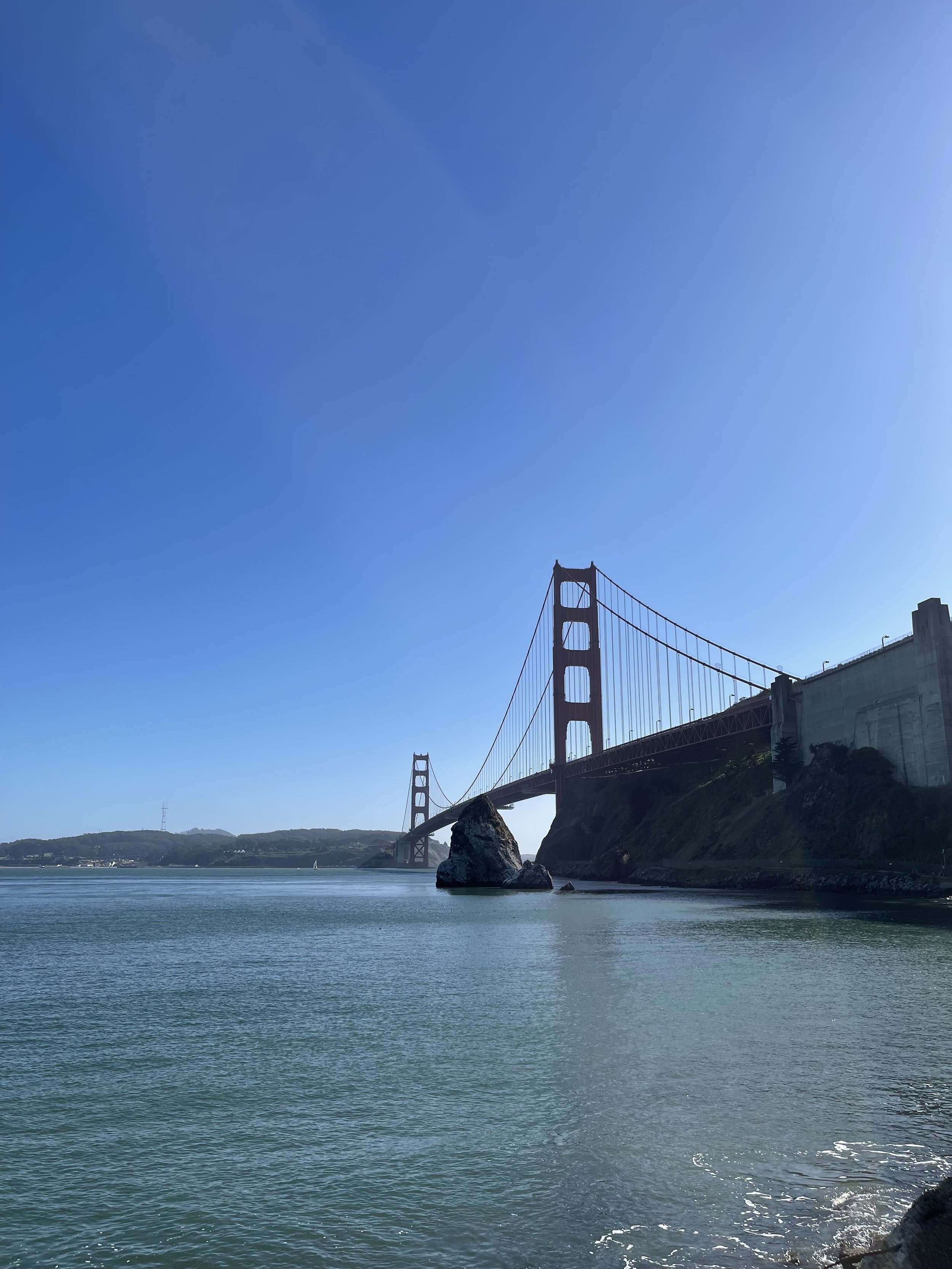 Once we wrapped at the baseball field, we made our way over the Golden Gate Bridge to the pier across the water, Fort Baker Pier. The idea was to actually shoot on the pier, but when we parked we found a cool area where you can get on the rocks sitting on top of the water. That area was also had the bridge in the foreground, so I knew we could get our money shot. Shoots are always more fun when you have a chance of slipping and falling in ocean water.